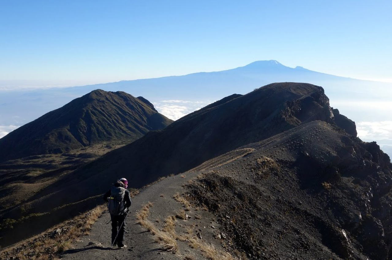At 4566m, Mount Meru is the fifth highest mountain on the African continent and the second highest in Tanzania. About 250 000 years ago, a massive volcanic blast blew away the entire eastern flank of the mountain and left it with the characteristic and distinctive appearance it has today.